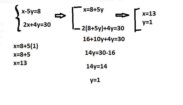 97y=301-10, 97 y=291 , y=3 7x-4(3)=2, 7x-12=2, 7x=12+2, 7x=14, x=2