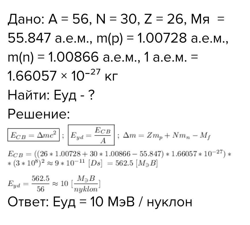 2)Рассчитайте удельную энергию связи ядра атома рубидия.