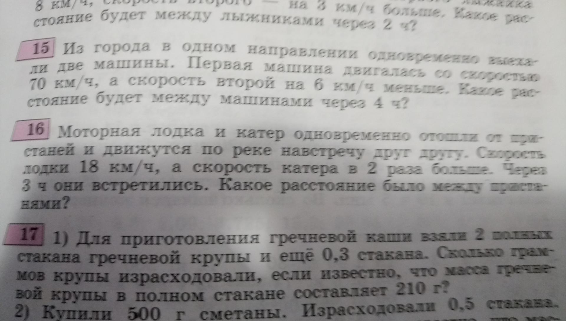 14 номер первый лыжник скорость 8 км/ч 2 лыжник ? его скорость на 3 км/ч больше чем у 1 то-есть 8+3=11 км/ч решение 1 лыжник 8 умножить на 2= 16 км 2 лыжник 11 умножить на 2= 22. 16+22= 38 км прошли 2 лыжники 16 номер лодка 18 км/ч катер ? как найти катер 18 умножить на 2= 36 км/ч решение 1 18 умножить на 3= 54 км проплыла лодка 2 36 умножить на 3= 108 км проплыл катер 3 108+54=162