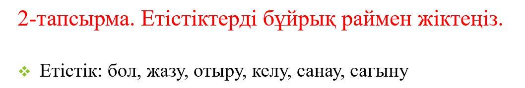 Ответ:Бол,Жаз,Отыр,Кел,Сана,Сағын
