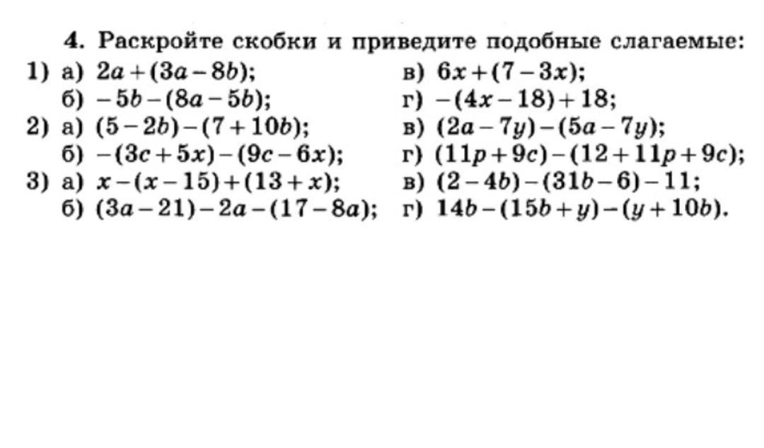 в)6x+(7-3x)=6x+7-3x=3x+7