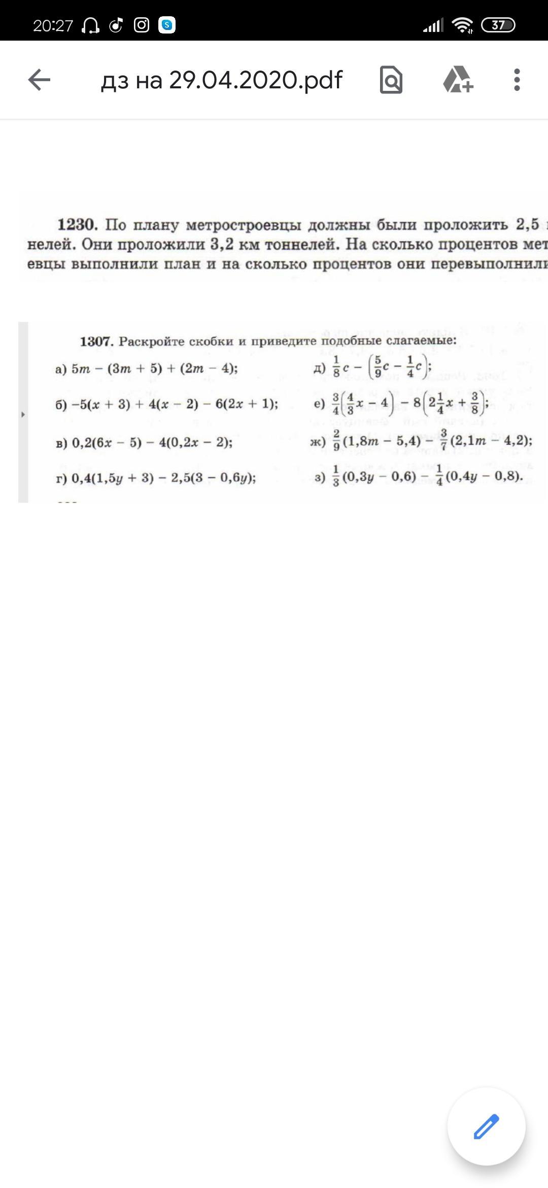 a)4m-9 б)-13x-29 в)0,4x+7 г)2,1y-6,3 д)