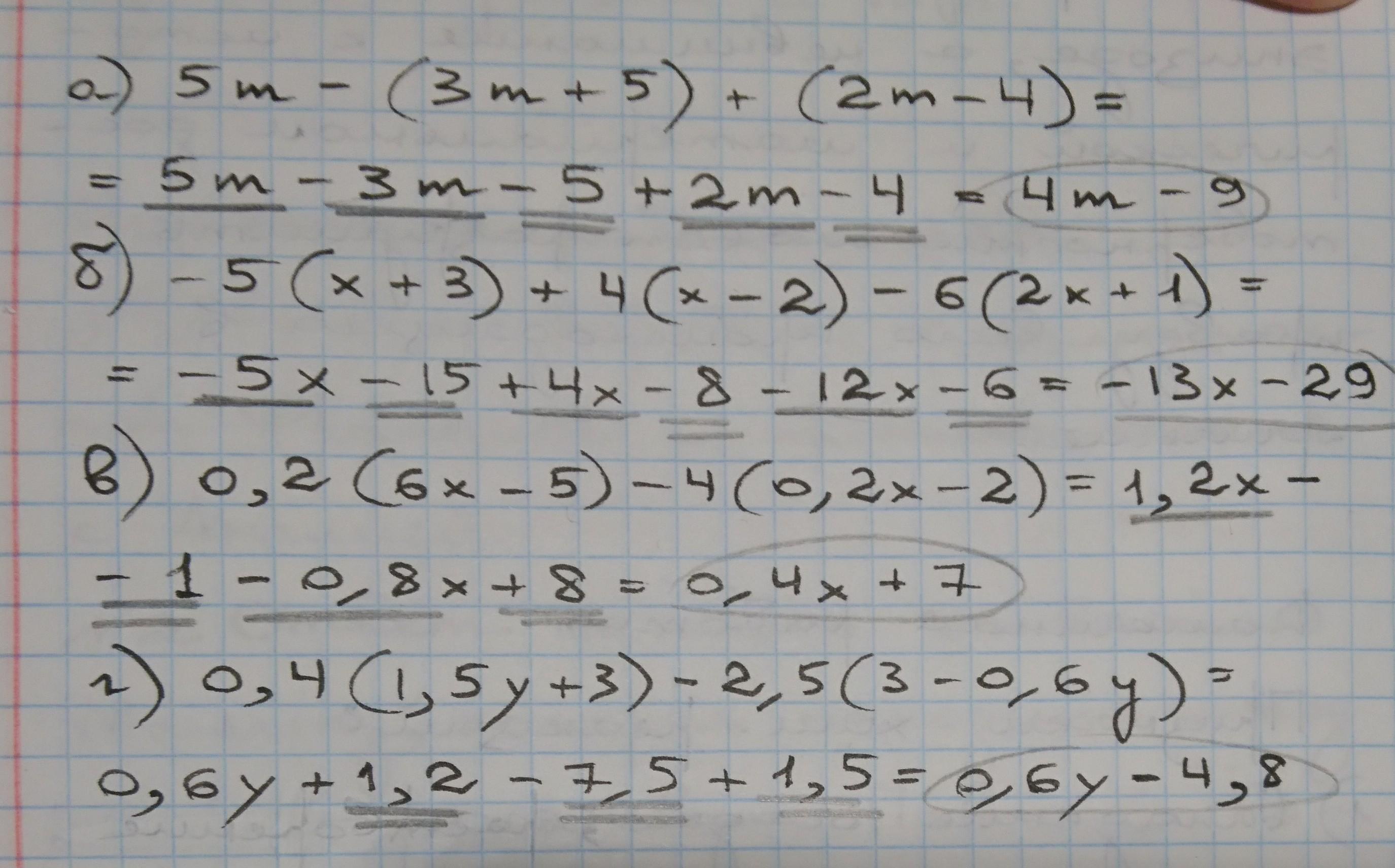 г)0,4(1,5y+3)-2,5(3-0,6y)