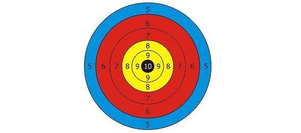 Из закреплённого ружья стреляют по мишени, представленной на рисунке. Выстрелить мимо мишени невозможно. Элементарным событием при одном выстреле будет выбивание определённого числа очков. Сколько элементарных событий в опыте при двух выстрелах?