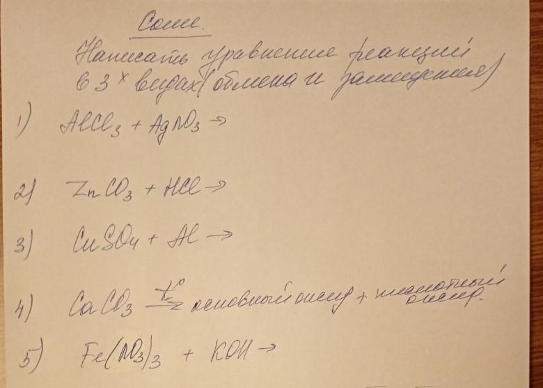 3) 3CuSO4+ 2Al= Al2(SO4)3+ 3Cu