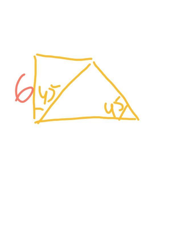 В прямоугольной трапеции меньшая боковая сторона равна 6см и составляет с меньшей диагональю угол 45◦ . Острый угол трапеции также равен 45◦. Найдите площадь трапеции.