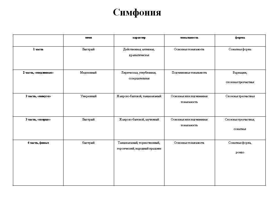 7.Симфония — (греч. созвучие) название оркестрового сочинения в нескольких частях. С. самая обширная форма в области концертной,оркестровой музыки. Вследствие сходства, по своему построению, с сонатой. из чего можно сделать вывод что симфонии не имеют названия, а только номер