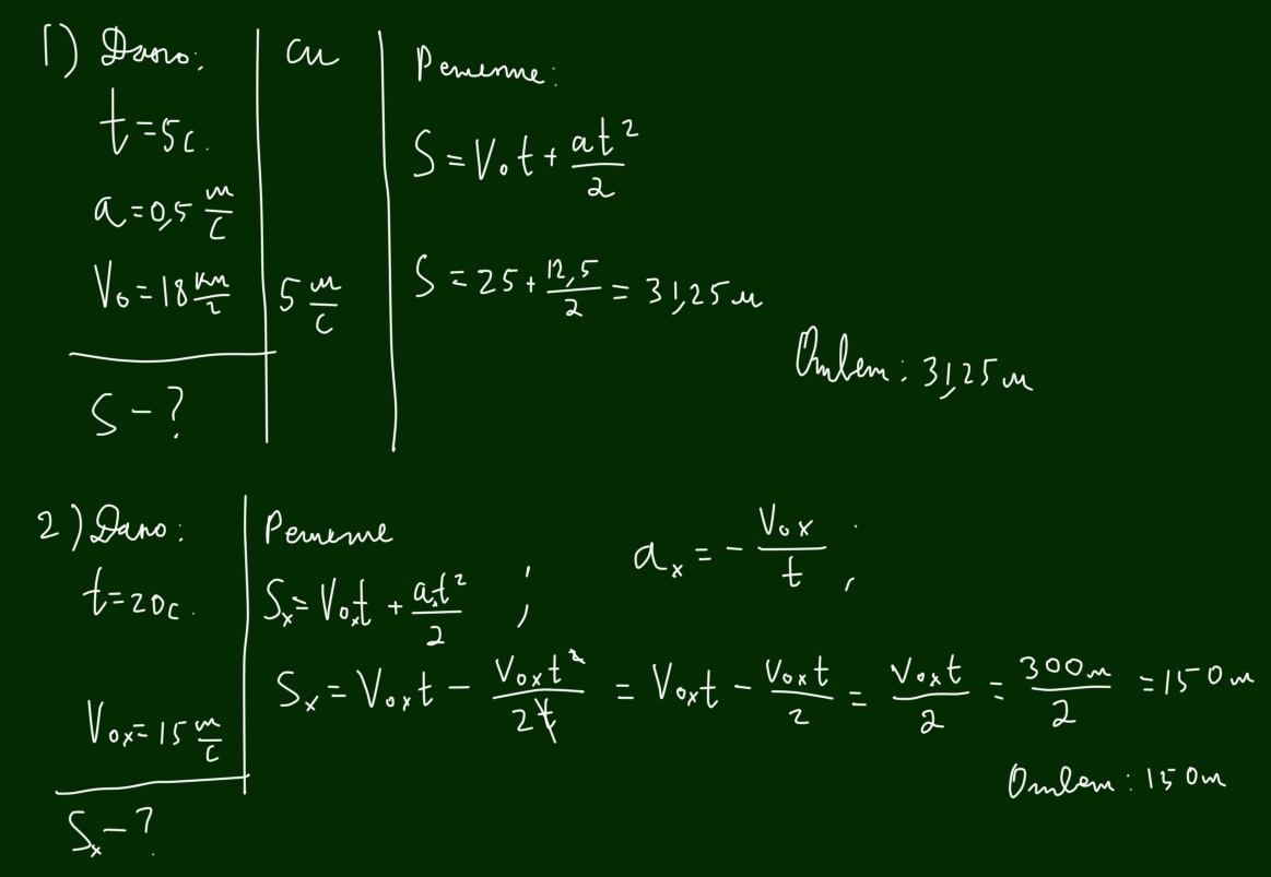2)Поезд,идущий со скоростью 15 м/с,остановился через 20 с после начала торможения,определите перемещение поезда за 20 с.