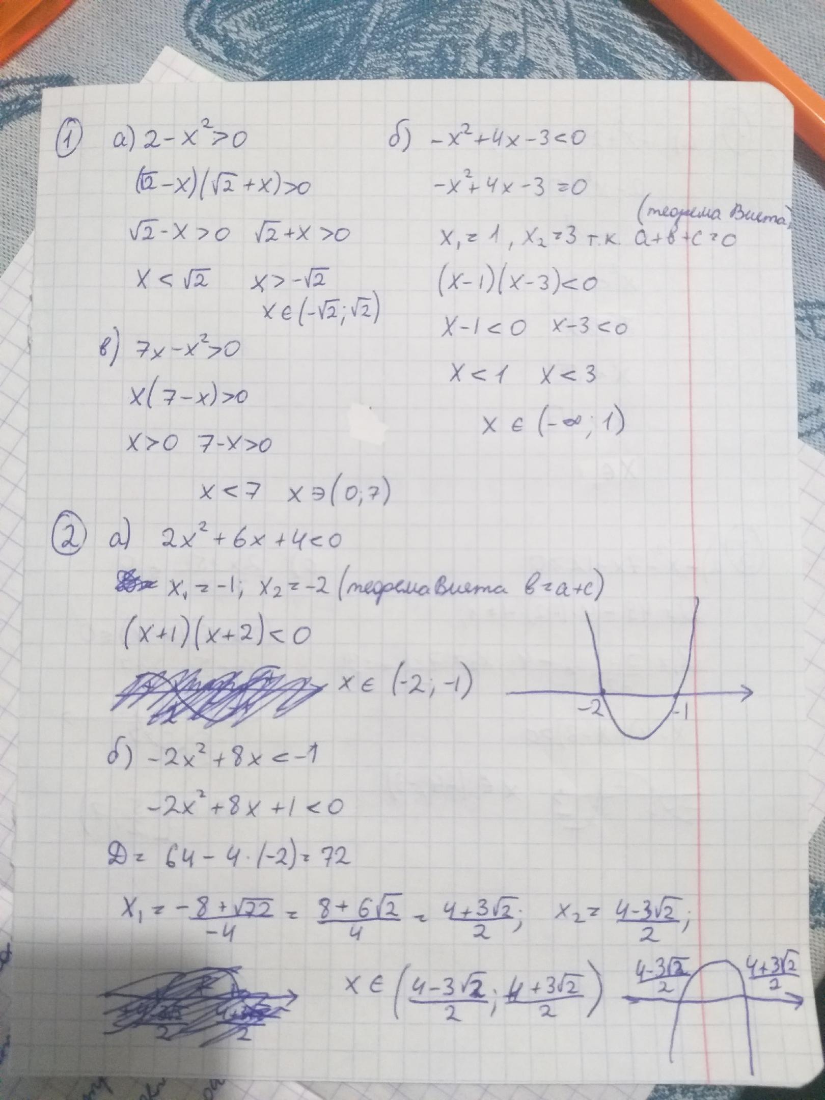 а) 2х2 + 6х + 4 < 0; б) - 2х2 + 8х < - 1;