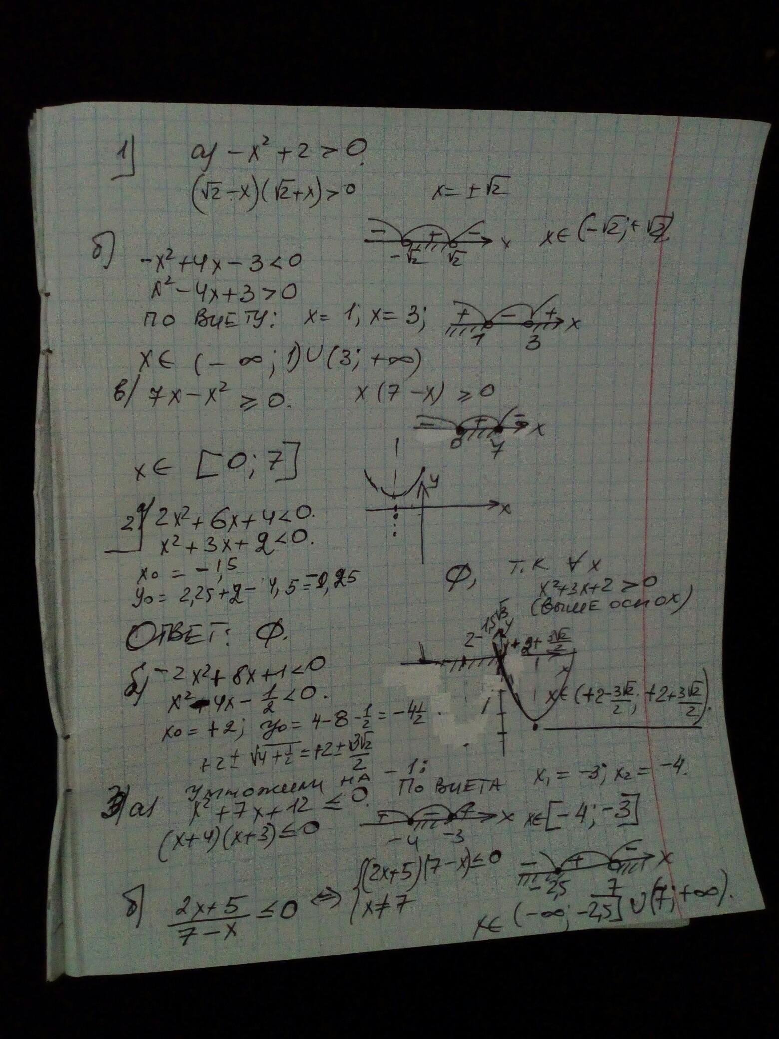 а) – х2 + 2 > 0; б) – х2 + 4х – 3 < 0; в) 7х – х2 ≥ 0