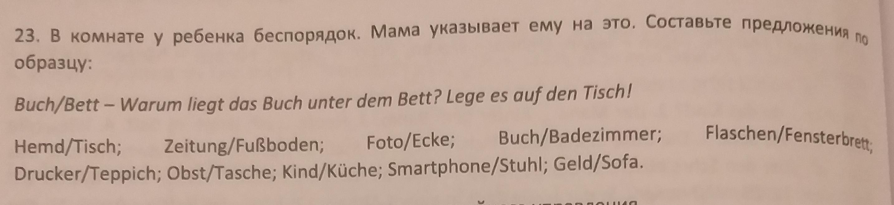 10. Warum liegt das Geld auf dem Sofa? Lege es in deine Geldbörse. (кошелек)