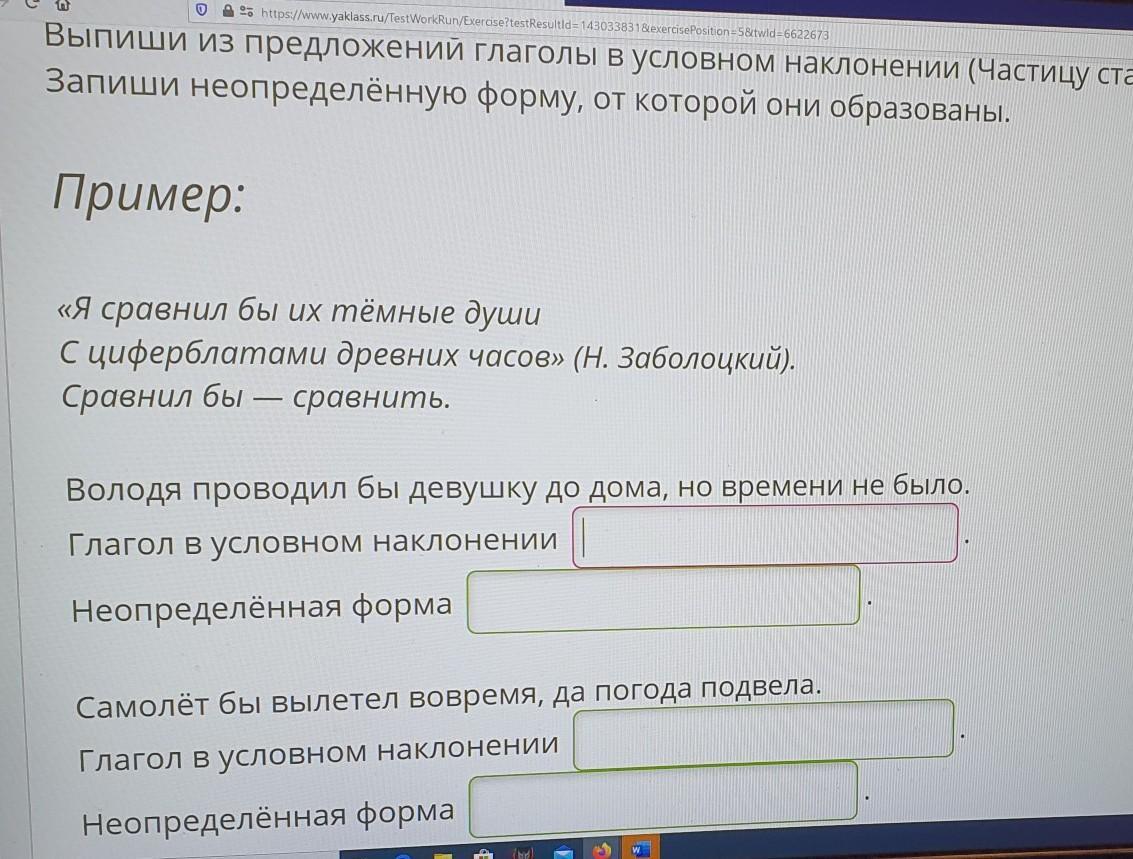 выпиши из предложений глаголы в условном наклонении частицы вставь после глагола запиши неопределённую форму от которой они образованы!