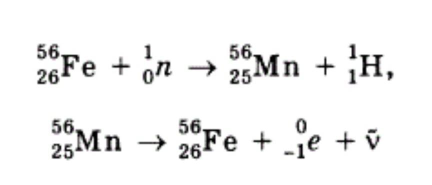 6. Напишите ядерную реакцию, происходящую при бомбардировке железа 26 56Fe нейтронами выбрасывается протон.