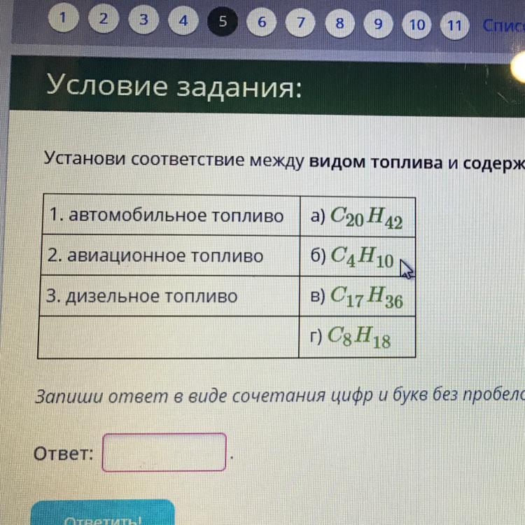 Установи соответствие между видом топлива и содержащимся в нём углеводород: