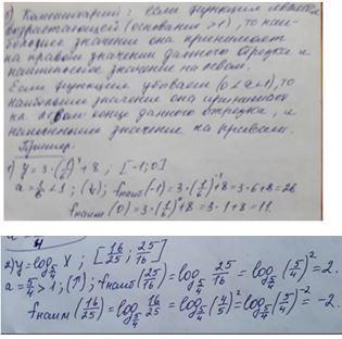 в) у= log_3х, [1/3;9] ; г) у= log_(1/2)х, [1/8;16] .
