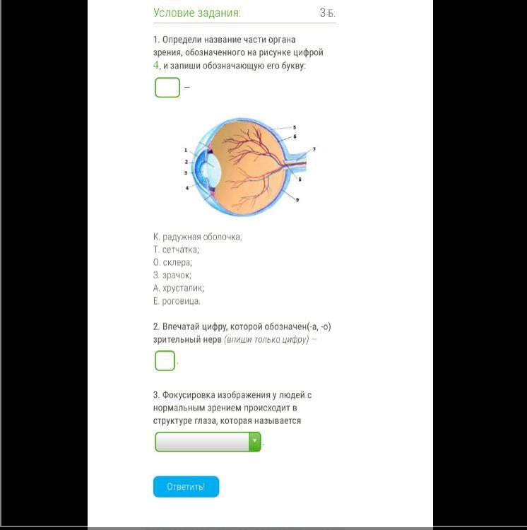 Фокусировка изображения человека с нормальным зрением происходит на сетчатке глаза в области желтого пятна, там расположено большее число колбочек.