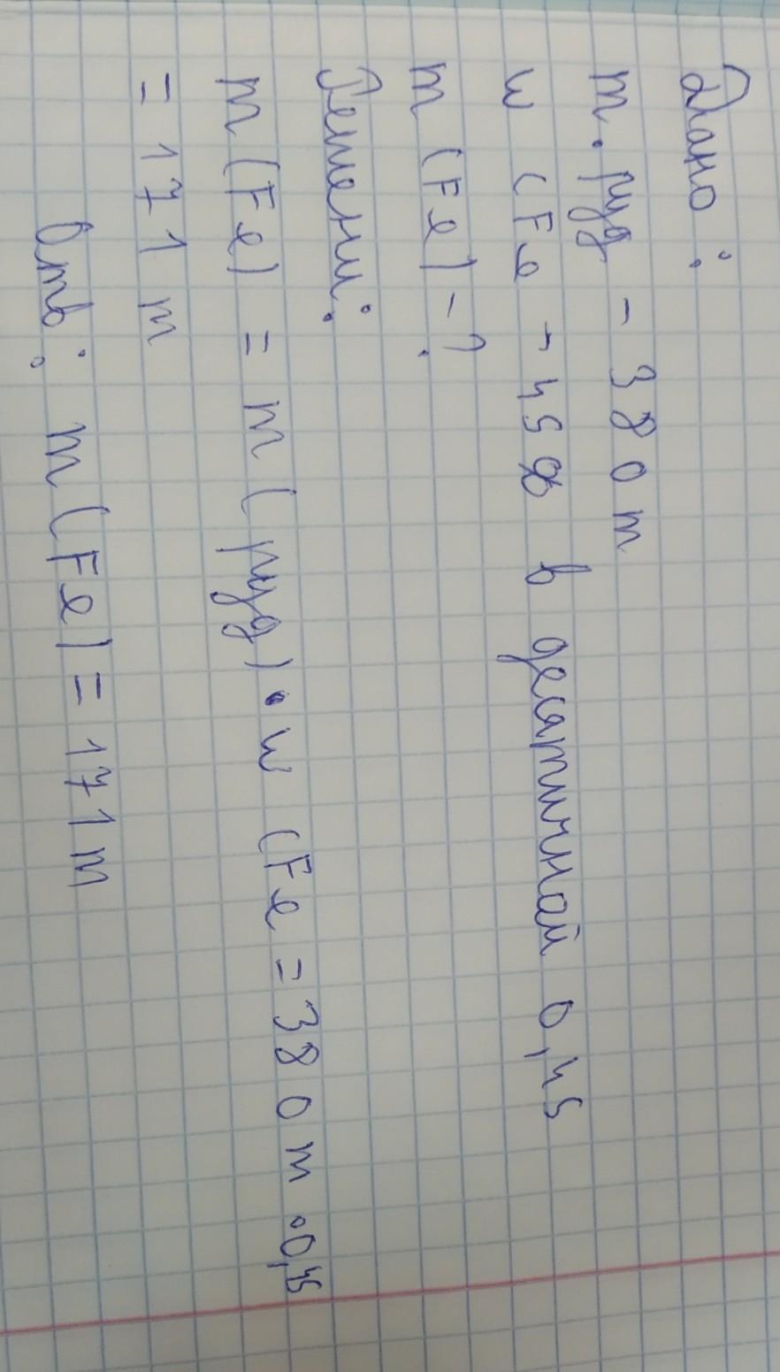 m(Fe) = m(руды)*ω(Fe) = 380 т*0,45 = 171 т