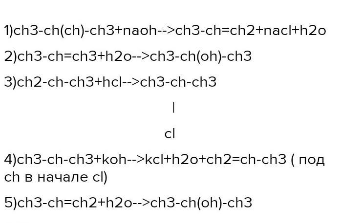 Выполните цепочкУ превращений: циклопропан → пропан → пропен → 2 – хлорпропан → пропанол – 2 →пропен