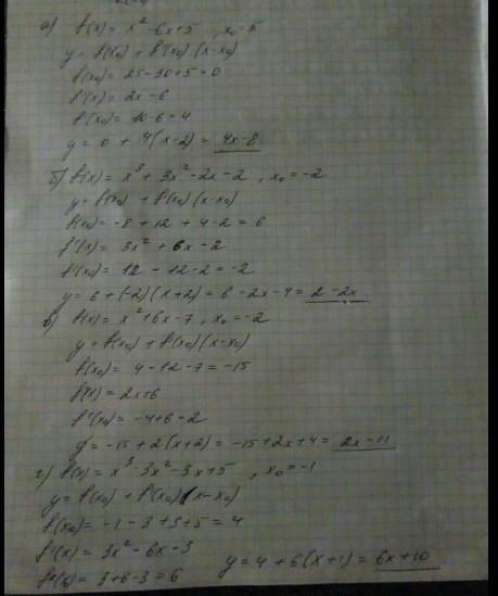 1. Напишите уравнение касательной к графику функции у = f(х) в точке графика с абсциссой х0, если: