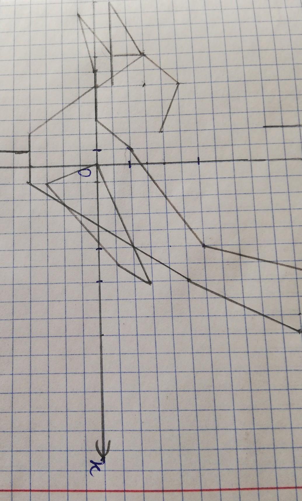 2) Крыло: (0; 0), (7; 3), (6; 1), (1; - 3), (0; 0).