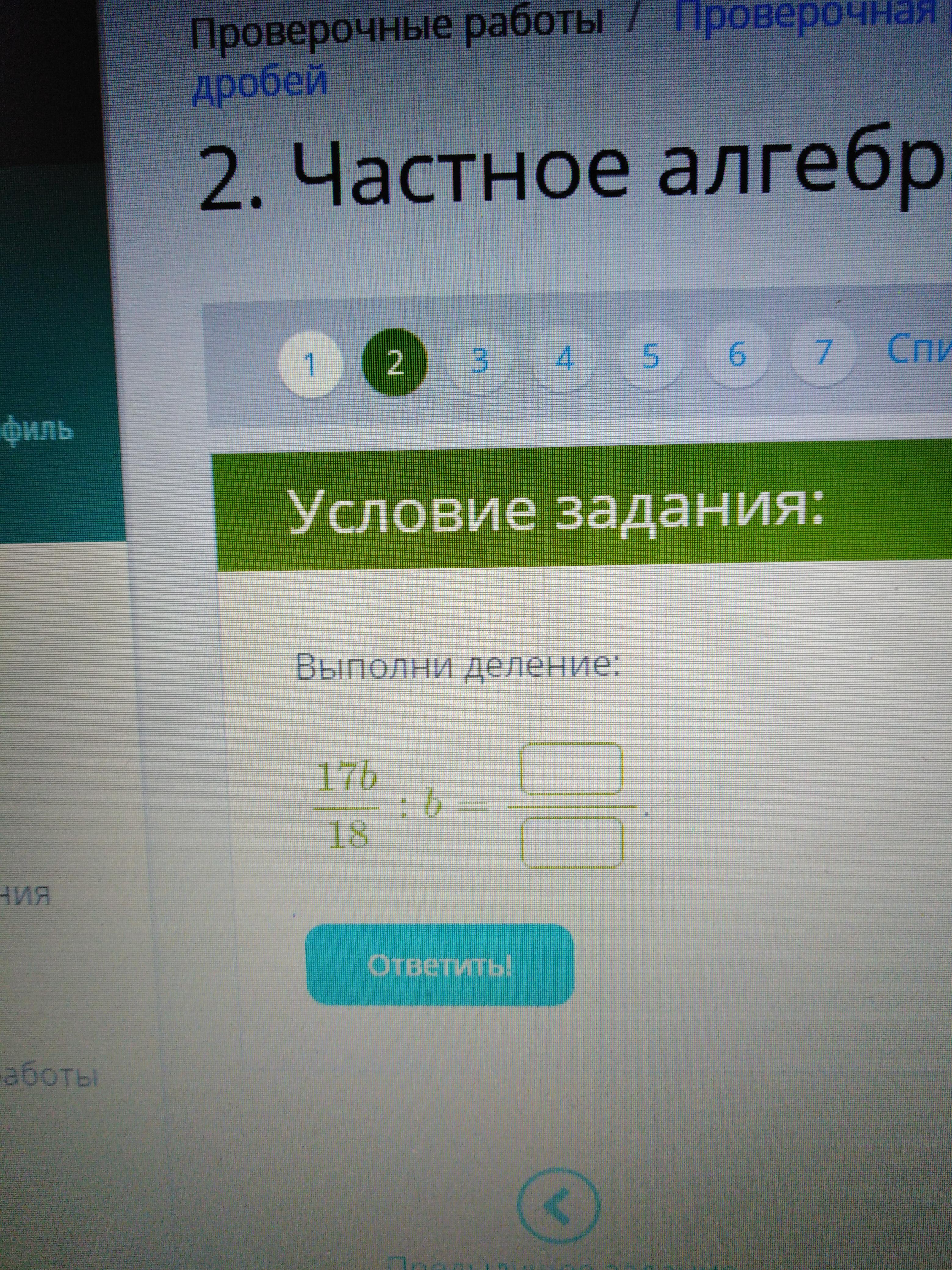 Ответ:чтобы поделить одну дробь на другую, нужно делитель (2 дробь) перевернуть. Получаем: