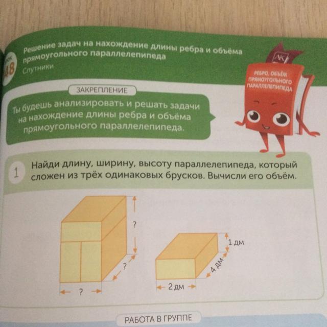 Пошаговое объяснение: V=(2дм *4дм * 1дм)*3=24 куб. дм