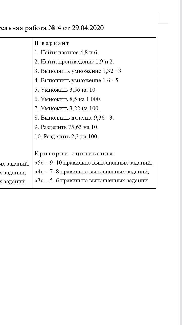 1) 4,8 : 6 = 0,8