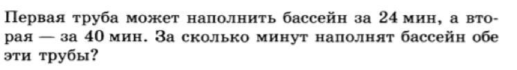 1/24+1/40=5/120+3/120=8/120=1/15 - две трубы за час