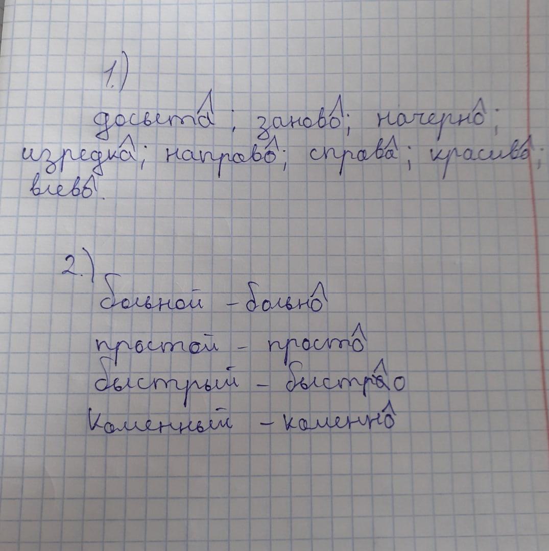 Досыта,заново,начерно,изредка,направо,справо,красиво,влево