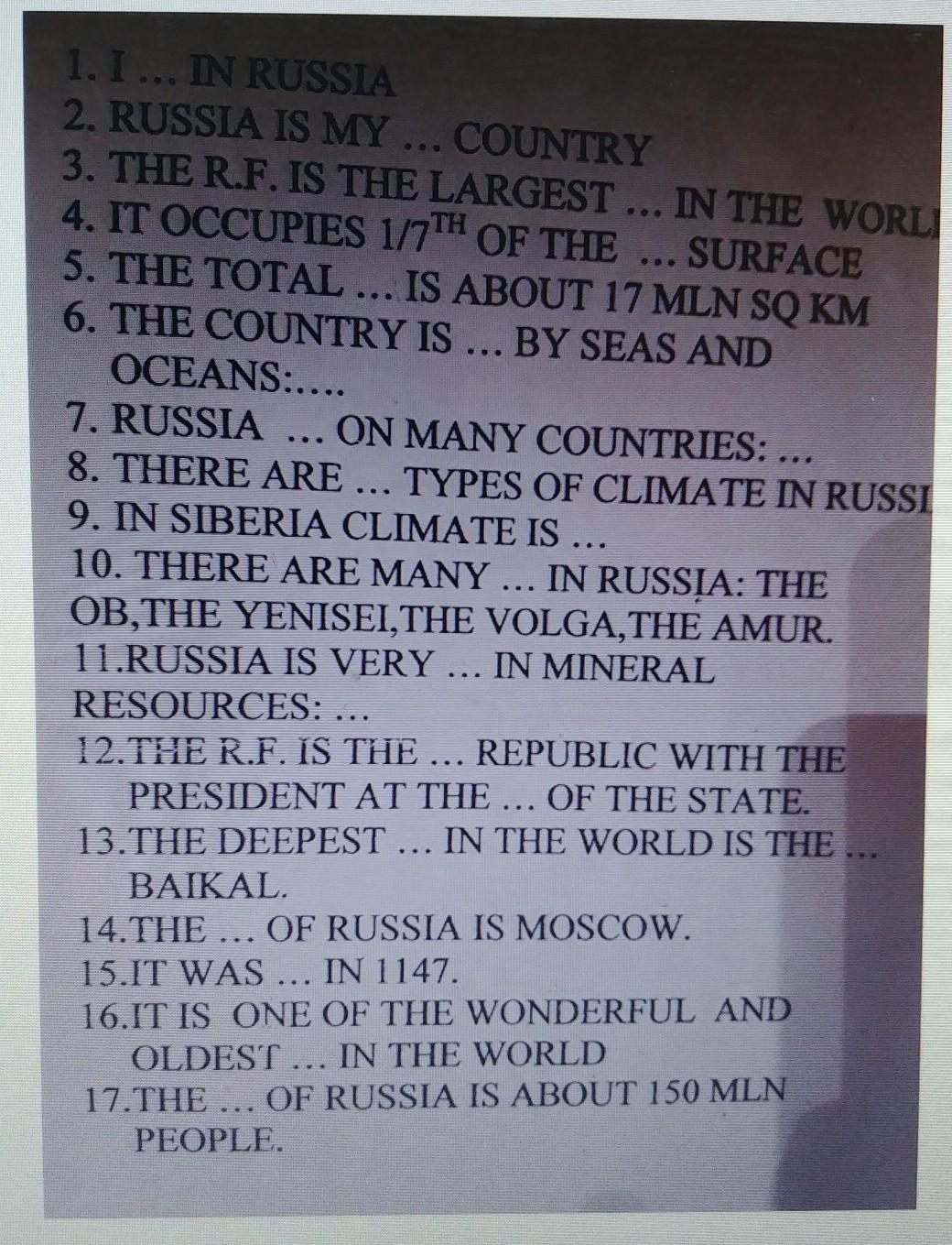 10. THERE ARE MANY .rivers.. IN RUSSIA: THE OB, THE YENISEI,THE VOLGA,THE AMUR.