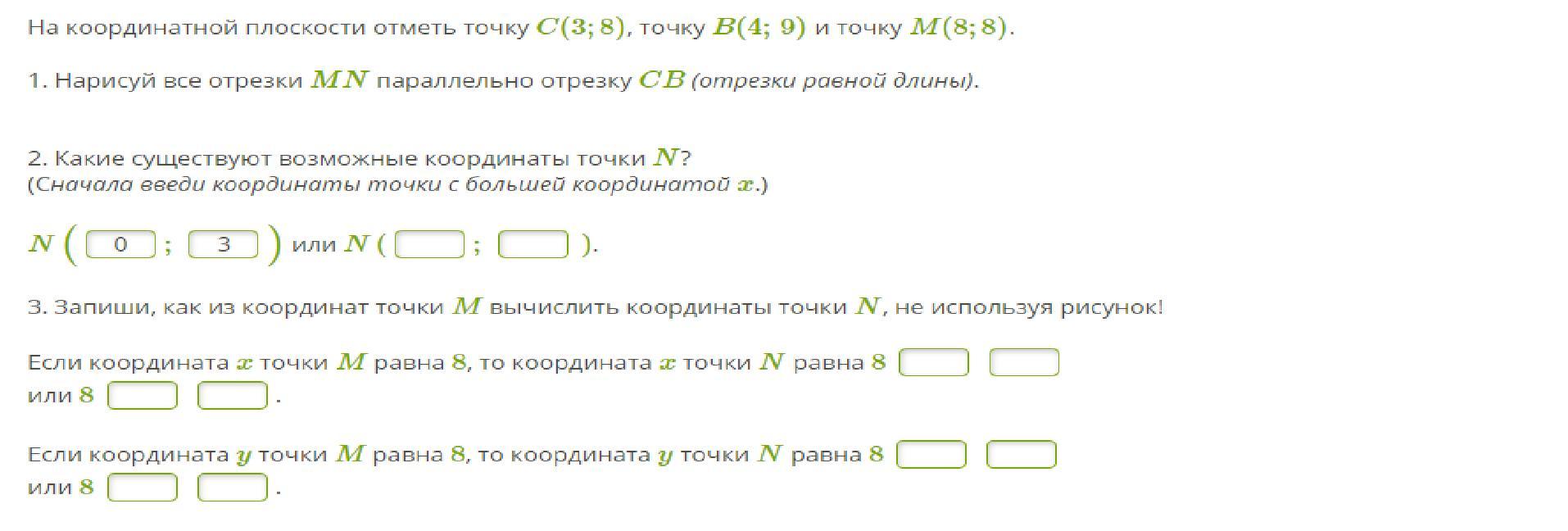 3. Запиши, как из координат точки M вычислить координаты точки N, не используя рисунок!
