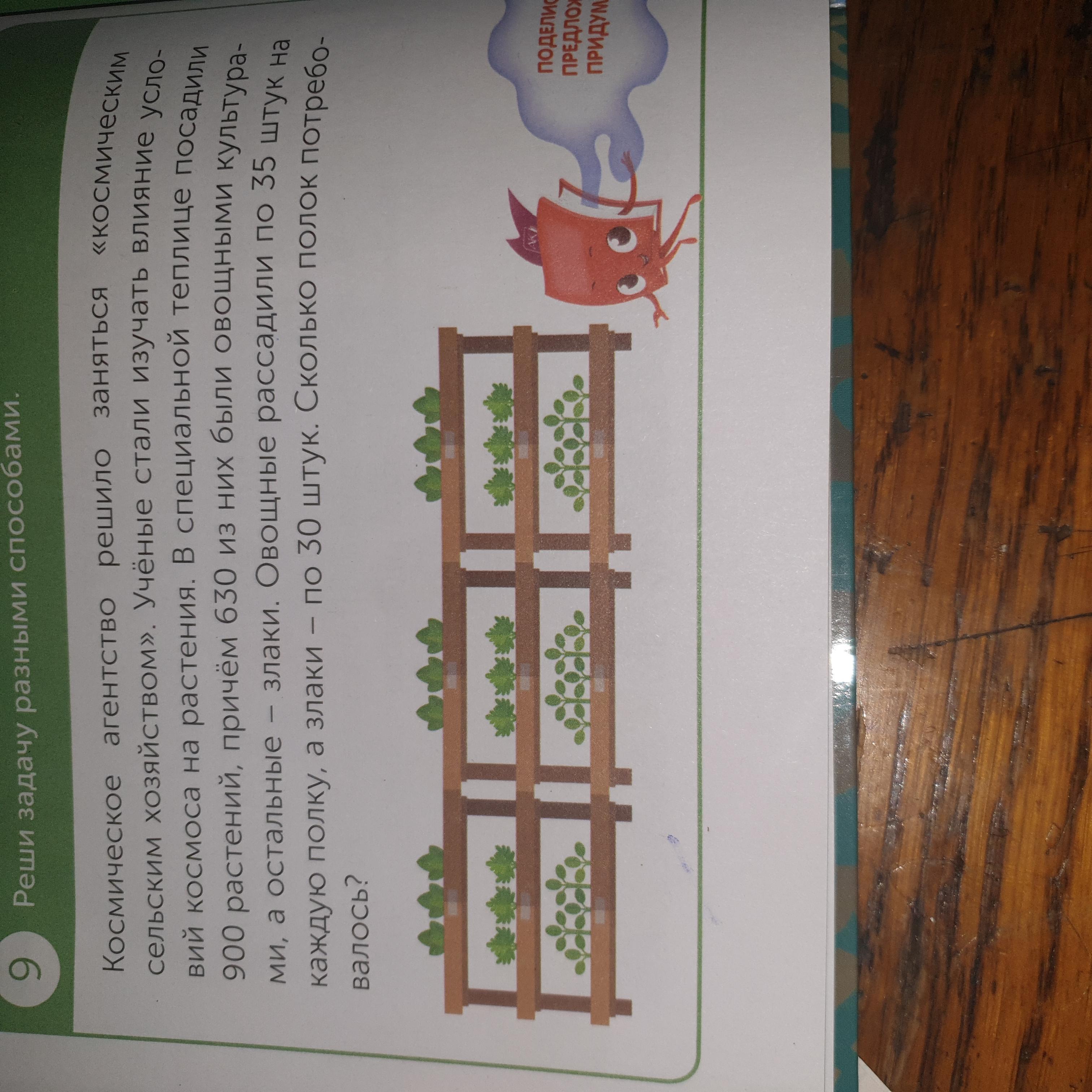Ответ:как показано на картинке 9 полок. 900-630=270