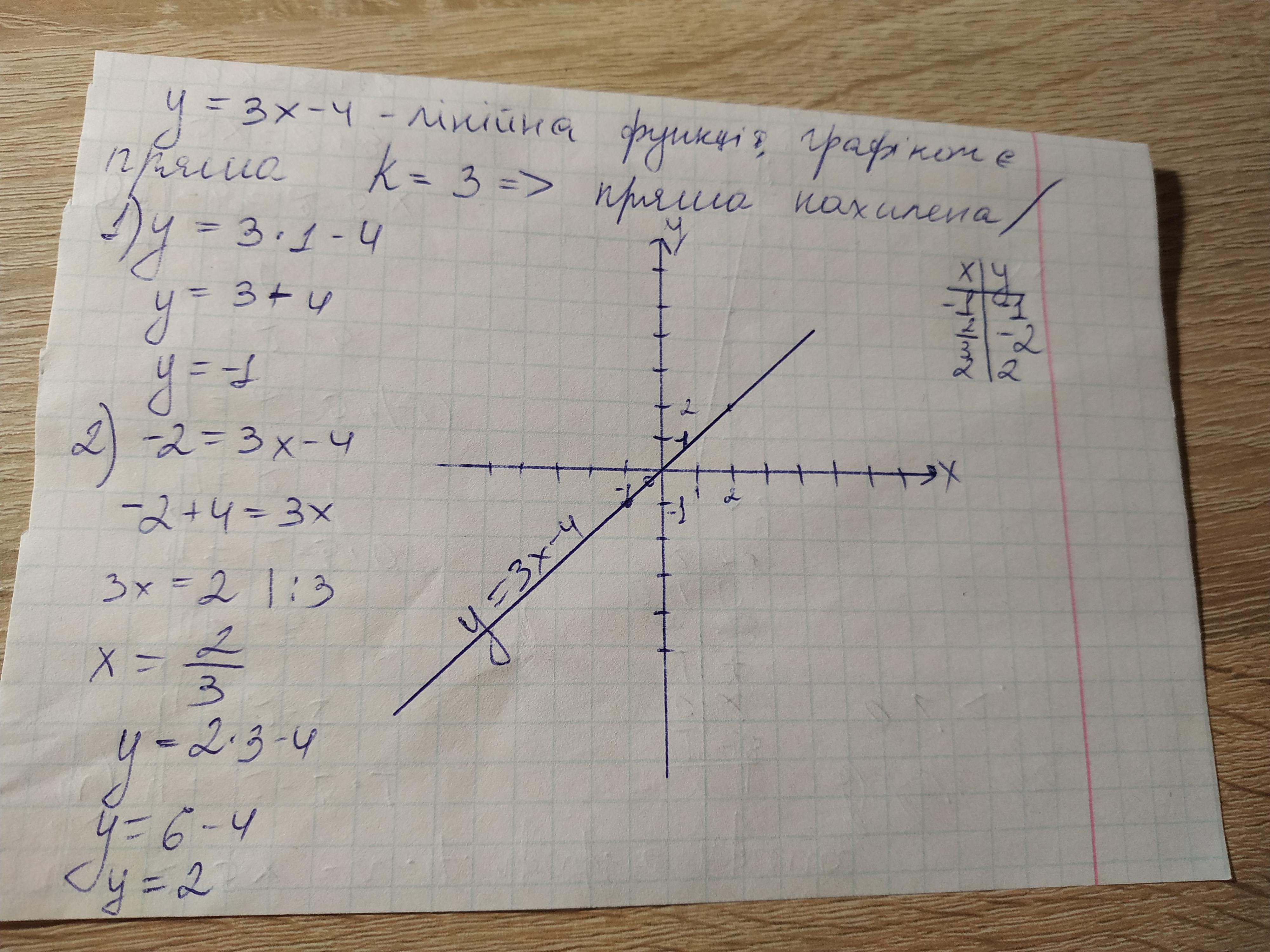 Побудуйте графік функції y=3x-4. За графіком знайдіть: