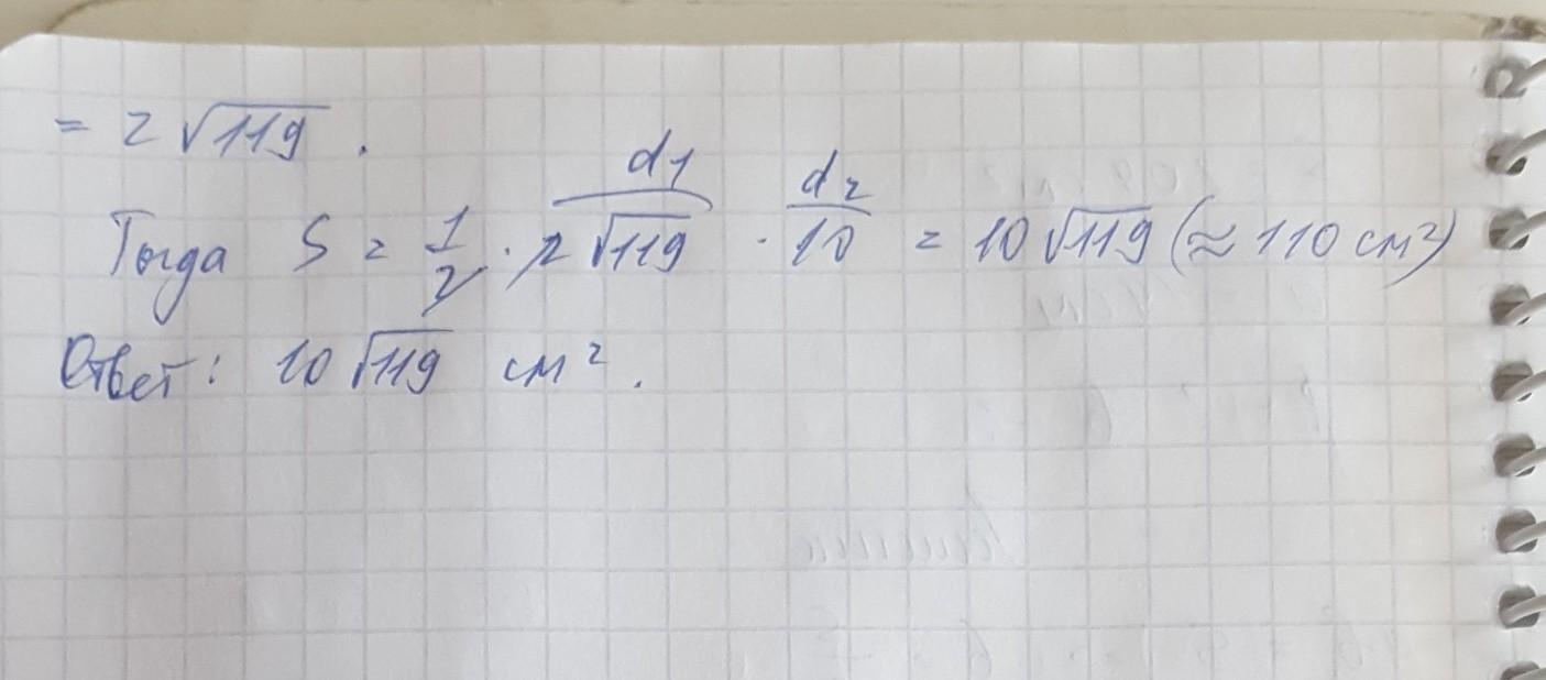 Найдите площадь ромба ,если его сторона равна 12 см , а одна из диагоналей - 10 см