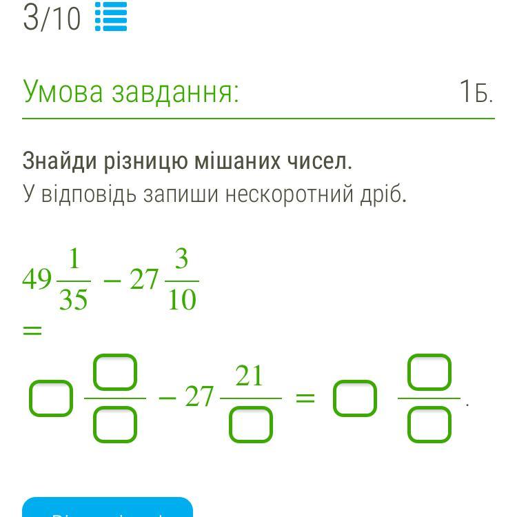 Доят начала переводим в неправильную дробь,подводим к одному знаменателю,вычитаем,переводим в правильную дробь.