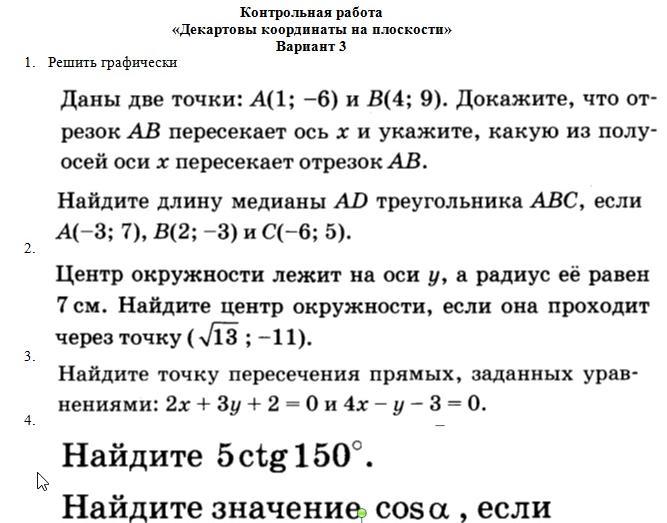 Решите контрольную работу по геометрии 8 класс, пожалуйста