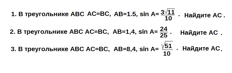 AC=AB/2cos a, cos^2 a=1-sin^2 a, cos^2 a=1-99/100=1/100, cos a=1/10=0,1, AC=1,5/(2*0,1)=1,5/0,2=7,5