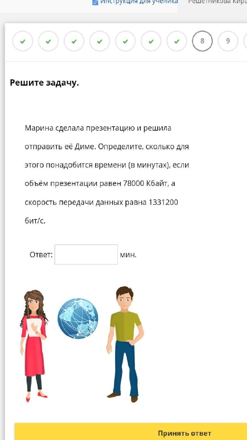 t = 638976000 бит / 1331200 бит/с = 480 с = 8 мин
