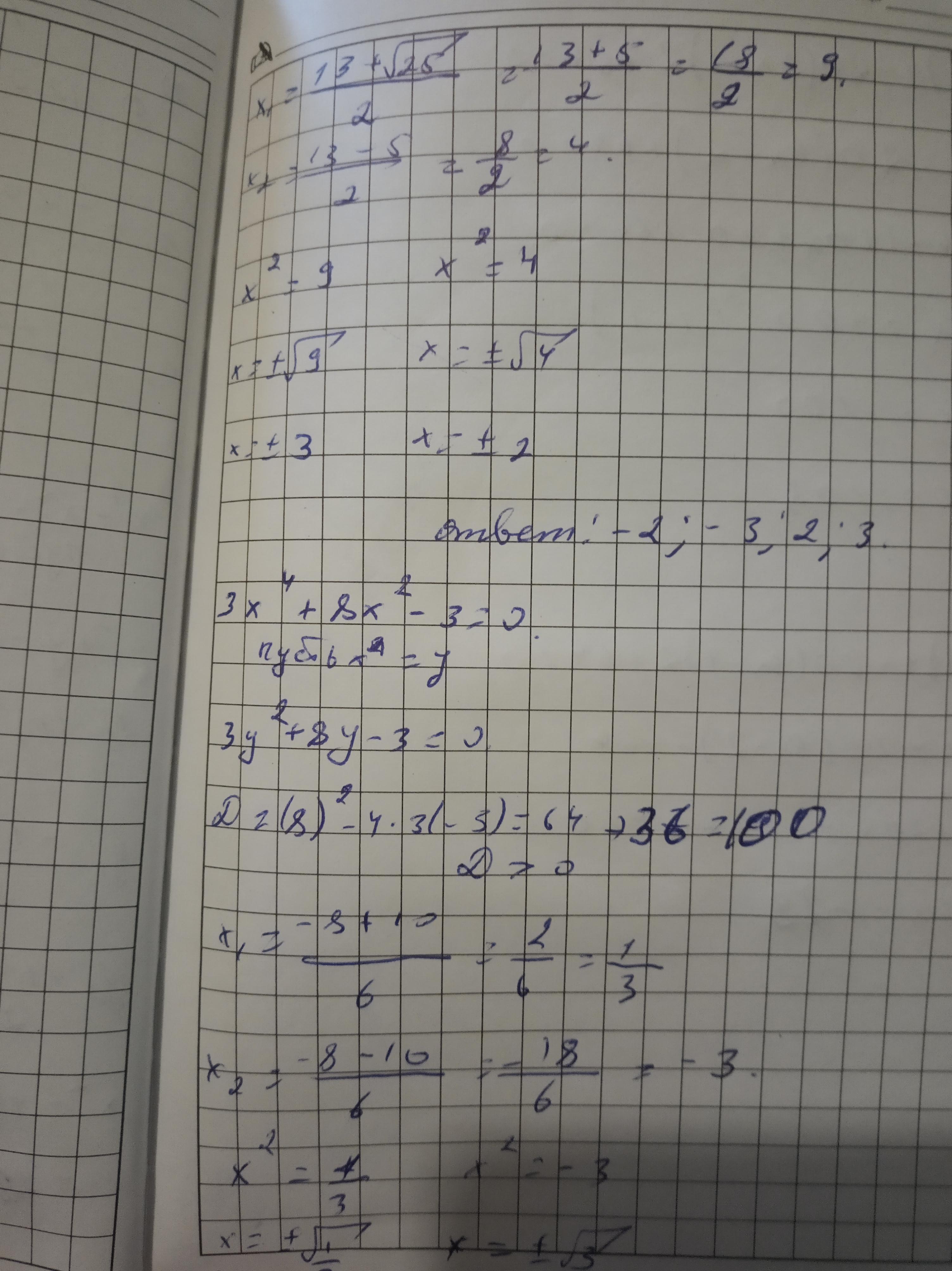 x4 − 13x2 + 36 = 0