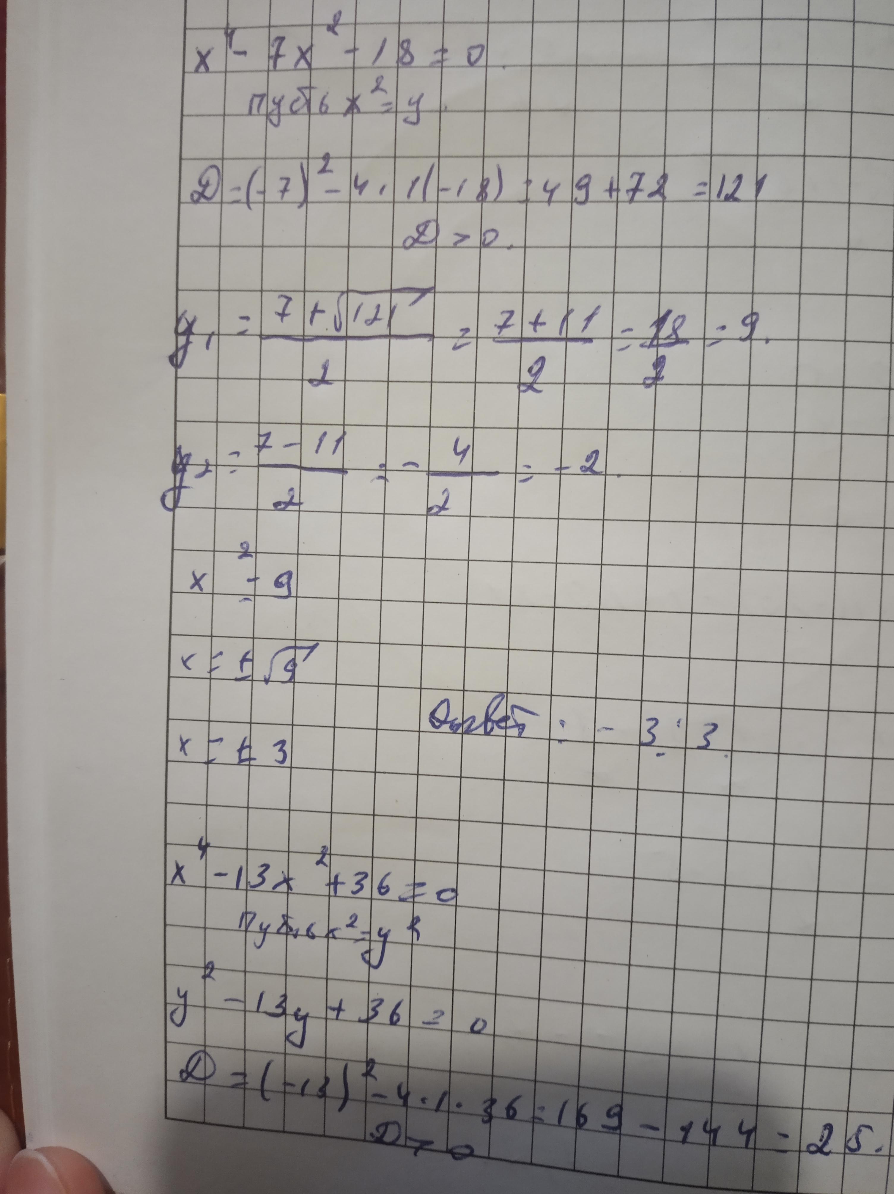 X4 − 7x2 − 18 = 0