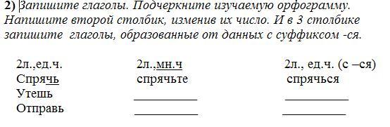так, во второй столбик: утешите,отправте, в третий столбик: утешься, отправся