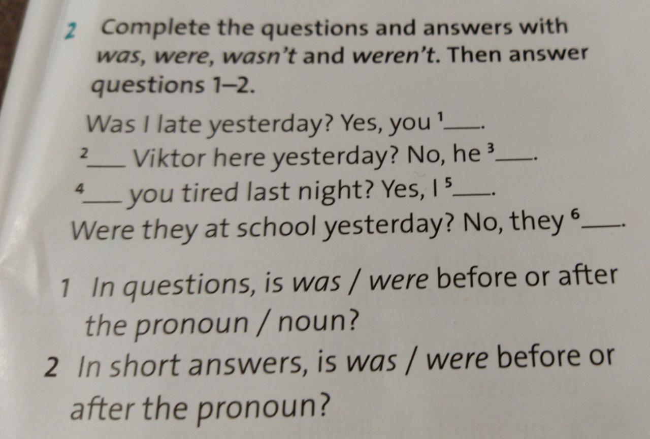 Step I Do exercise 2 at page 107. You should complete the questions and answers with was, were, wasn’t and weren’t / Выполни упражнение 2 на странице 107, в учебнике. Teбе следует заполнить пропуски в предложениях, используя слова was, were, wasn’t и weren’t