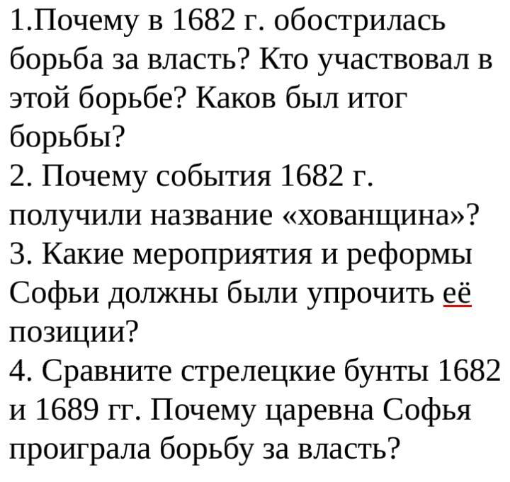 Помогите с ответами на вопросы. Борьба за власть в России в конце 17 века