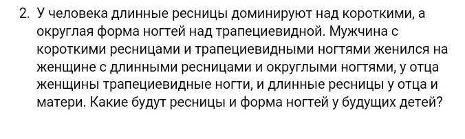Биология, надо определить НЕ ГЕНОТИП а какая форма ногтей, и длинна ресниц будет у детей, РАСПИСАТЬ с дано и решением. Заранее благодарен