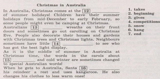 12 beginning 13 hang 14 compititions 15 snow 16 gives
