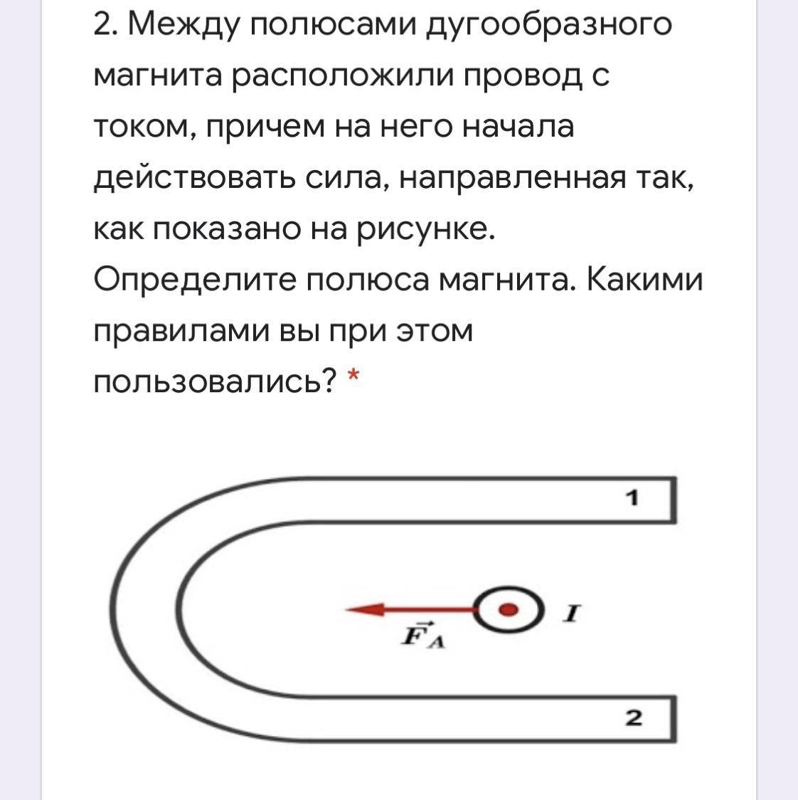 Ладонь снизу, в нее входят магн. силовые линии, значит №2 - северный полюс магнита N, a S - №1.