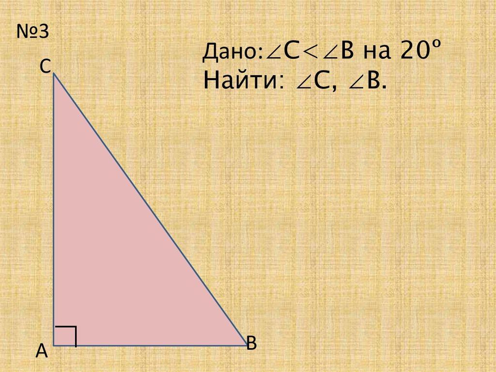 1)( 180-90)÷2=45° углы при основании равнобедренного ∆ 3) <С-х°, <В-х+20, сумма этих углов равна 180-90=90°, отсюда х+х+20=90, 2х=90-20, 2х=70, х=35°, значит <С=35°, а <В=35+20=55°