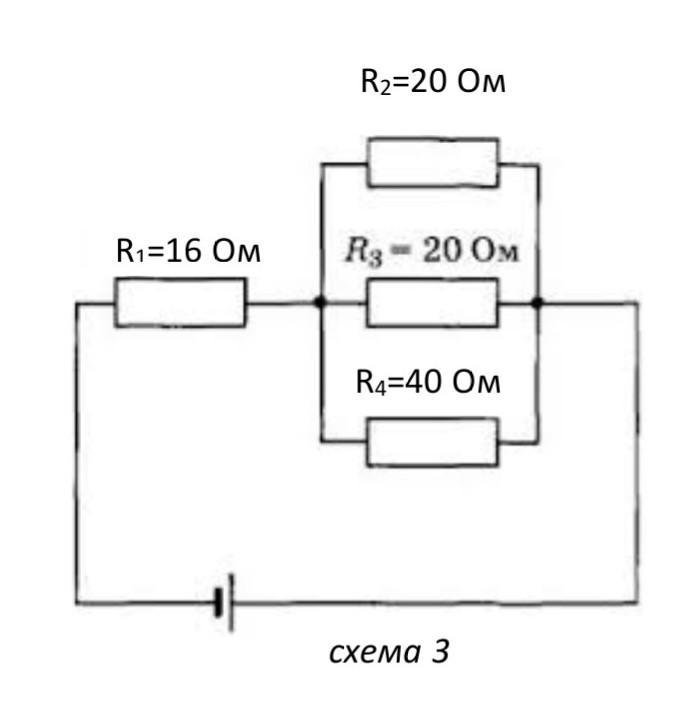 ЭДС источника 12В, его внутренним сопротивлением пренебречь, остальные данные на схеме. Определите силу тока, протекающего через каждый участок. Подсказка: сначала ищем общий ток и только потом распределяем его по участкам.