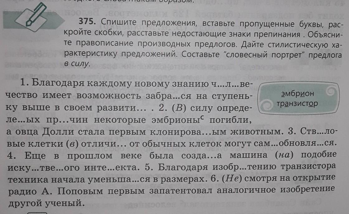 375. Спишите предложения, вставьте пропущенные буквы, рас-