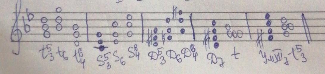 . Постройте в соль миноре 11 аккордов. Тоническое трезвучие(5/3), Тонический секстаккорд(6),Тонический квартсекст аккорд(6/4),Тресзвучие субдоминанты(S5/3),секстаккорд (S6),квартсекст аккорд (S6/4),